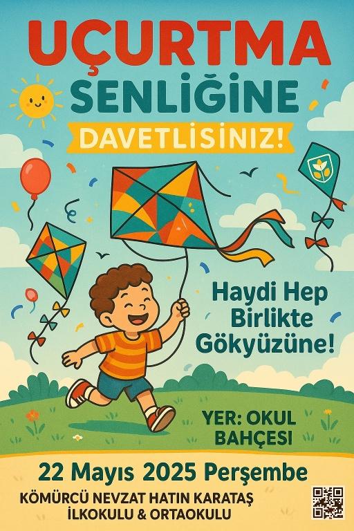 Kıymetli velilerimiz ve öğrencilerimiz 22 Mayıs Perşembe günü saat 10:00'da yapılacak olan şenliğimize ister kendi uçurtmanızla isterseniz şenlik alanımızda birlikte yapacağımız uçurtmalarla bize katılın. Katılımınız bizleri çok mutlu edecektir.